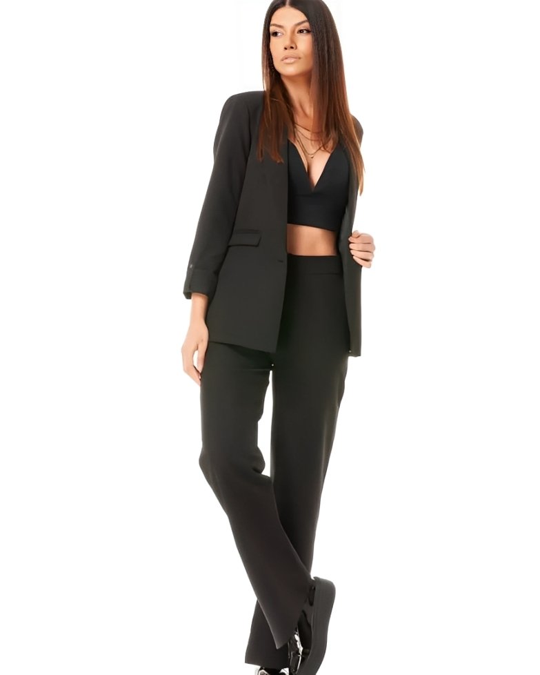Um clássico que nunca sai de moda. O Conjunto Verona Preto une o blazer de corte preciso à calça de alfaiataria reta, criando um visual poderoso, elegante e atemporal — ideal para o trabalho ou eventos sofisticados.